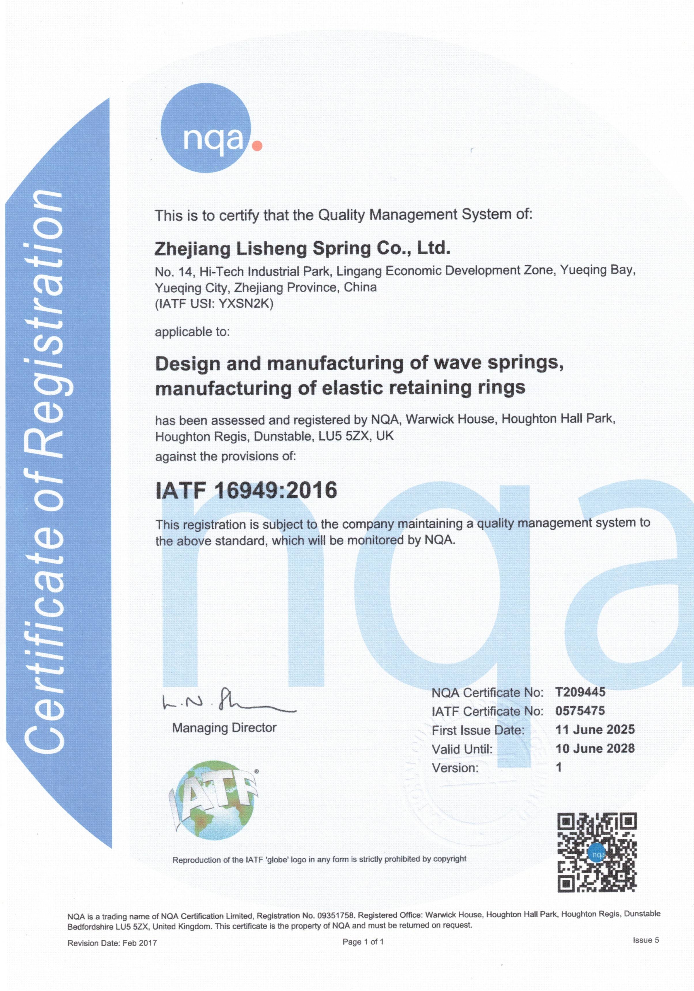 On September 1, 2021, Lispring has successfully obtained the IATF16949 quality system certification issued by the international authoritative organization NFC. This major breakthrough marks that the lifting spring has obtained the necessary access qualifications in the automotive field, and fully demonstrated the excellent strength of the company in standardized management, process construction and quality management.